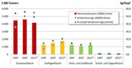 Eine besonders rasante Entwicklung von Produktion und Verbrauch ist beim Geflügelfleisch zu beobachten. Im Vergleich zum Schweinefleisch haben sich sowohl Produktion als auch Verbrauch nach oben entwickelt. Die Schlachtmenge bei Geflügel ist von 680.000 Tonnen im Jahr 1997 auf gut 1,5 Millionen Tonnen im Jahr 2017 gestiegen und hat damit in ihrer Bedeutung die Rindfleischproduktion überholt. 2017 haben die Deutschen 1,7 Millionen Tonnen Geflügelfleisch verbraucht, dies entspricht einem Pro-Kopf-Verbrauch von fast 21 kg je Einwohner.