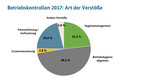 Die meisten Beanstandungen gab es wie 2016 bei den Dienstleistungsbetrieben. 67,4 % aller Beanstandungen entfielen auf Gastronomiebetriebe und Einrichtungen der Gemeinschaftsverpflegung wie Kantinen. Auf Platz 2 folgt der Einzelhandel, den 21,3 % aller Beanstandungen betrafen.Verstößt ein Betrieb gegen gesetzliche Vorgaben oder die Lebensmittelhygiene, ergreifen die Lebensmittelüberwachungsämter bestimmte Maßnahmen.