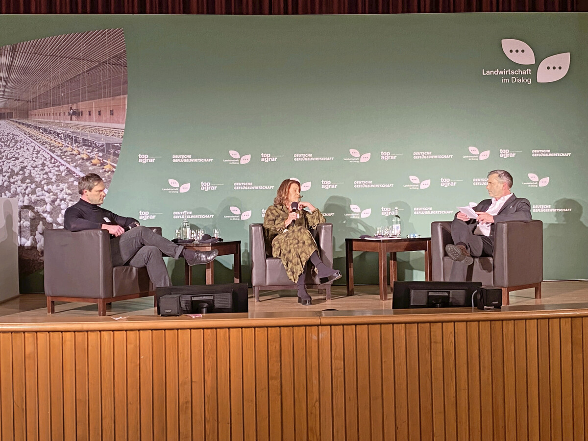 Dennoch kritisiert sie immer neue Forderungen hinsichtlich der Rahmenbedingungen. Und sie beklagt, dass der Dialog mit gesellschaftlichen Gruppen ausbleibt und sie sich vielmehr Vorwürfen ausgesetzt sehe. Dieser Druck stehe ihrem dauerhaften und permanenten Einsatz und ihrer Verantwortung für die Tiere und ihrem Stolz auf ihren Beitrag zur Ernährungssicherung, gegenüber. Die fehlende Dialogbereitschaft zeigte sich auch während dieser Veranstaltung, als Aktivisten mit Spruchbannern die Bühne betraten, jedoch nicht auf Gesprächseinladungen durch die Moderatoren eingingen.