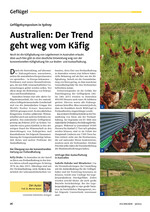 Durch die Entwicklung, auf alternative Haltungsformen umzurüsten, stehen die australischen Eierproduzenten vor speziellen - in Europa bekannten - Problemen und neuen Herausforderungen, die mit Hilfe wissenschaftlicher Untersuchungen gelöst werden sollen. Vor allem steigt die Bedeutung von Federpicken und Kannibalismus. Australien besitzt eine sehr aktive Geflügelwissenschaft, die von der australischen Geflügelwissenschafts-Gesellschaft und von der Australischen Gruppe der World's Poultry Science Association (WPS A) getragen wird. Zu den jährlichen Kongressen werden zahlreiche Wissenschaftler auch aus anderen Erdteilen eingeladen. Das australische Geflügelsymposium im Februar 2015 in Sydney vermittelte einen guten Einblick in den...