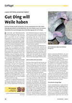 Im Versuchs- und Bildungszentrum Landwirtschaft Haus Düsse wurde anhand von Putenhennen der Herkunft BUT 6 untersucht, ob eine verringerte Besatzdichte zusammen mit einer nähr-stoffreduzierten Fütterung positive Aus-wirkungen auf Tiergesundheit, Fußballengesundheit und Brusthautveränderungen hat. Die übliche Besatzdichte wurde im Vergleich zum Standardaufzuchtverfahren um 10 % reduziert. Die Fütterungsperiode untergliederte sich in fünf bzw. sechs Phasen, wobei ab der dritten Phase gegenüber dem Standardfutter nährstoffreduziert gefüttert wurde. Dies bedeutete, dass im Vergleich zum Standardfutter der Rohproteingehalt (RP) um 1,5 % und der Energiegehalt um 0,3 MJ ME je kg Futter abgesenkt wurde.