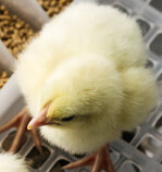 Die Küken kommen in der Brüterei Elsnigk der Wimex-Unternehmensgruppe seit Januar in Brutschränken aus Glas auf die Welt. Noch während des Schlupfes werden sie in den Schlupfkisten mit Futter und Wasser versorgt und in diesen dann auch an die Mäster ausgeliefert.