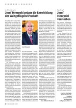 Am 6. März 2017 ist Josef Meerpohl im Alter von 85 Jahren verstorben. Mit ihm hat nicht nur die deutsche Geflügelwirtschaft eine ihrer prägendsten Persönlichkeiten verloren. Wie wohl kein anderer hat er die Entwicklung der Weltgeflügelwirtschaft entscheidend beeinflusst. Es soll an dieser Stelle nicht die Entwicklung des Unternehmens Big Dutchman nachgezeichnet werden, sondern es soll zumindest ansatzweise versucht werden, das Lebenswerk dieses außergewöhnlichen Menschen zu verstehen. Dies erscheint mir möglich, da er mich 45 Jahre lang in meiner wissenschaftlichen Tätigkeit begleitet hat und wir in dieser Zeit in vielen Gesprächen in freundschaftlicher Verbundenheit unsere Beurteilung anstehender Probleme sowie unsere Vorstellungen über sich in Zukunft bietende Möglichkeiten austauschten.