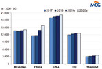 Das amerikanische Landwirtschaftsministerium (USDA) hat Anfang Oktober eine erste Prognose zur Hühnerfleischproduktion 2020 veröffentlicht. Die gesamte Produktion der erfassten Länder dürfte danach 2020 die Grenze von 100 Mio. t mit 103,5 Mio. t Schlachtgewicht erstmals übersteigen. Die Produktion des Jahres 2019 würde damit um 4 % übertroffen. Auch für das laufende Jahr wird ein Wachstum von 4 % erwartet. Ursächlich für das deutliche Plus ist zum großen Teil die Entwicklung in China. Durch die dort grassierende Afrikanische Schweinepest ging die chinesische Schweineproduktion drastisch zurück. Von 2018 bis 2020 wird ein Rückgang von 36 % erwartet.