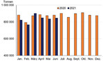 In der Gemeinschaft der 27 EU-Staaten (ohne das Vereinigte Königreich) wurden in den ersten sechs Monaten dieses Jahres insgesamt 5,02 Mio. t Hähnchenschlachtungen erfasst. Das waren 3,3 % weniger als im gleichen Zeitraum 2020. Die MEG hat dabei Angaben nationaler Statistikämter und von Eurostat veröffentlichte Schlachtergebnisse zusammengefasst.
