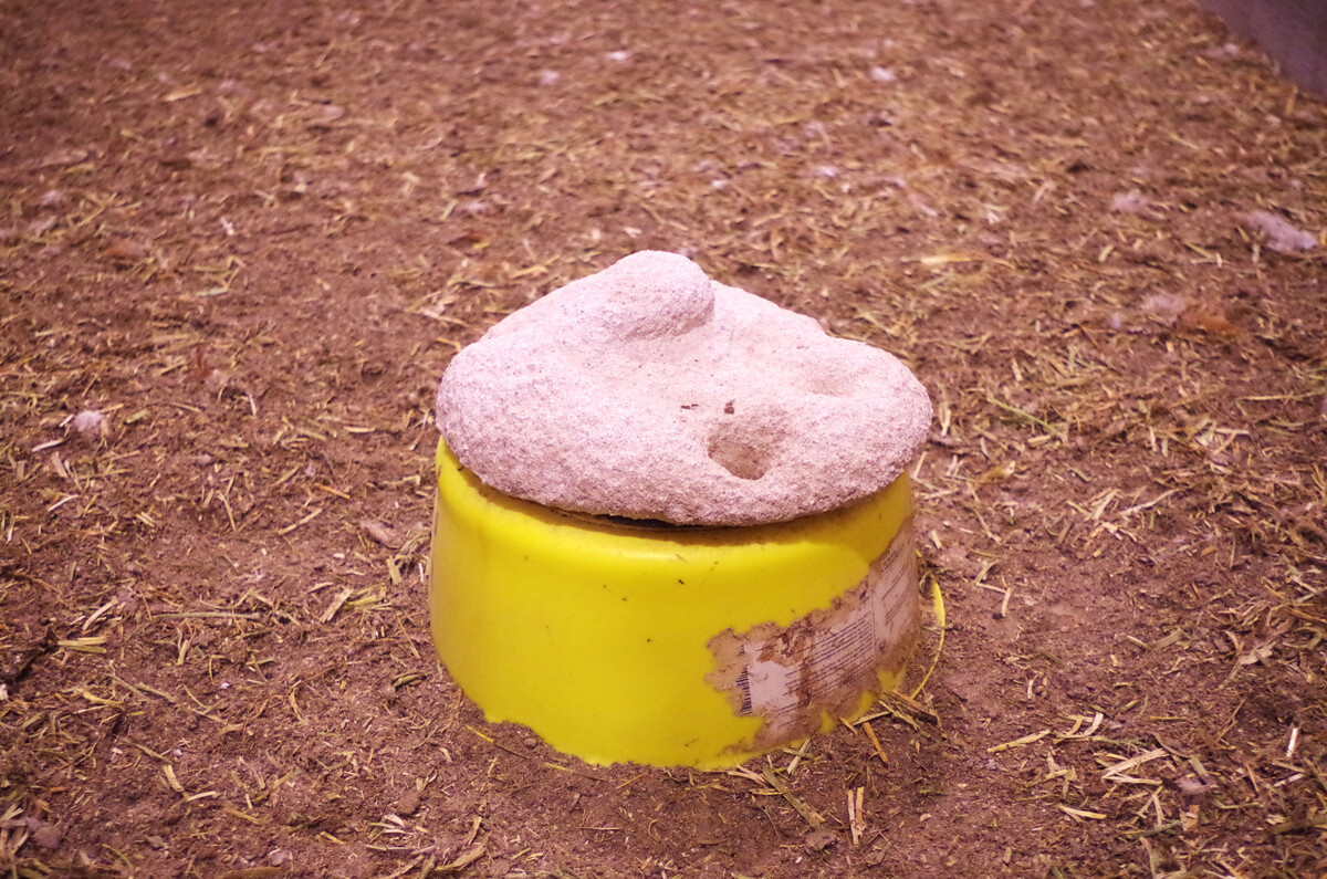 Solche sogenannten Magenwickler blockieren im Extremfall den Verdauungstrakt. Garrelfs zeigte im Webinar mehrere Beispiele aus der Praxis. In geöffneten Muskelmägen finden sich dann dichte Faserknäuel, die sich nicht mehr weitertransportieren lassen. Aus diesem Grund rät Garrelfs davon ab Heu, Heulage oder Grassilage als Beschäftigungsmaterial einzusetzen. Diese Materialien können zu Kropfwicklern führen, die in der Praxis eher bekannt sind, weil man es den betroffenen Tieren direkt am vergrößerten Kropf ansieht. Damit keine Wickler entstehen sollten besser kurzfaserige Materialien wie Luzerne eingesetzt werden. Stroh eignet sich ebenfalls, weil die Halme leicht brechen und nicht in der ganzen Länge abgeschluckt werden. Der Einsatz von säureunlöslichen Magensteinchen ist für eine Zerkleinerung der Partikel im Muskelmagen besonders wichtig. Anfangs sollten diese breitwürfig in die Einstreu gegeben werden, später, wenn die Tiere daran gewöhnt sind, können Spender aufgestellt werden. Kurzfaserige Materialien oder strukturierte Futtermittel, die sich im Muskelmagen problemlos zerkleinern lassen, sind geeignet.
