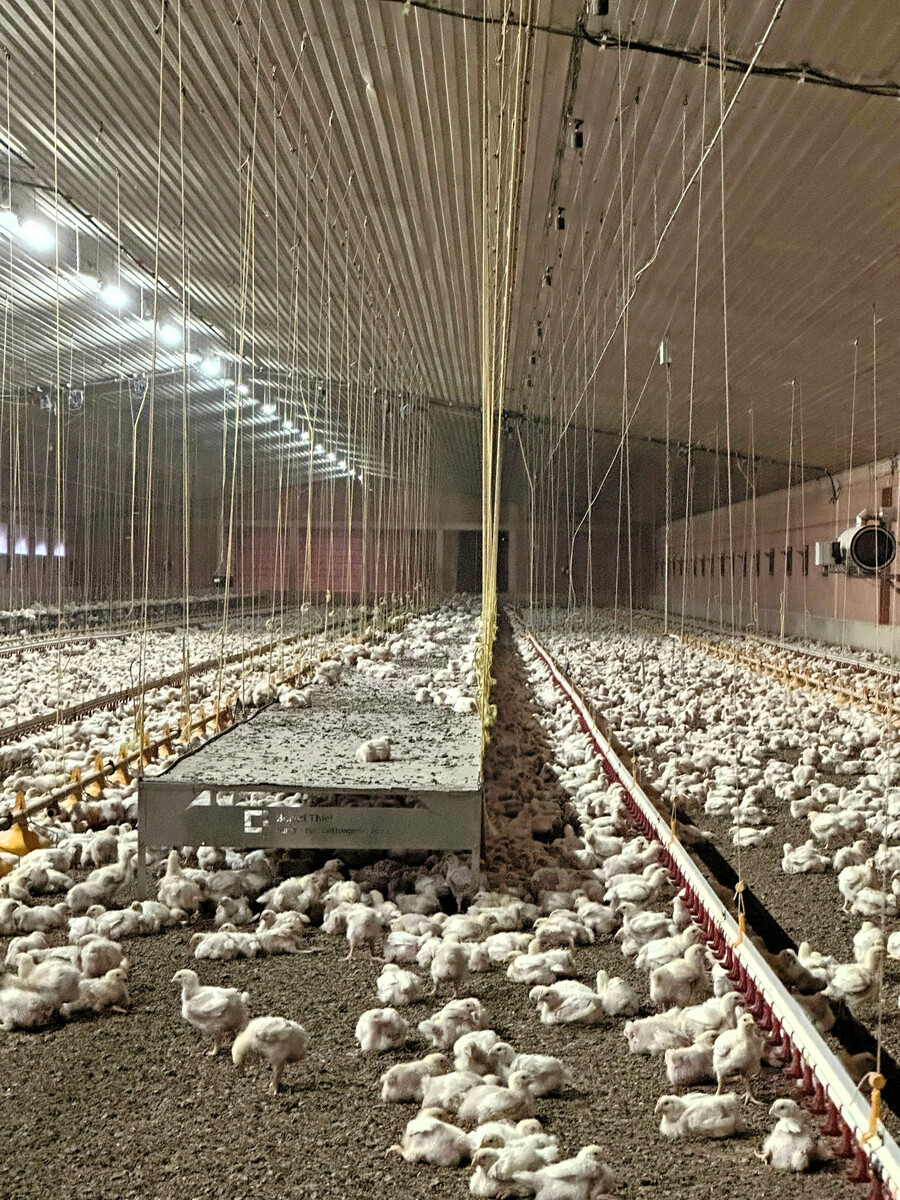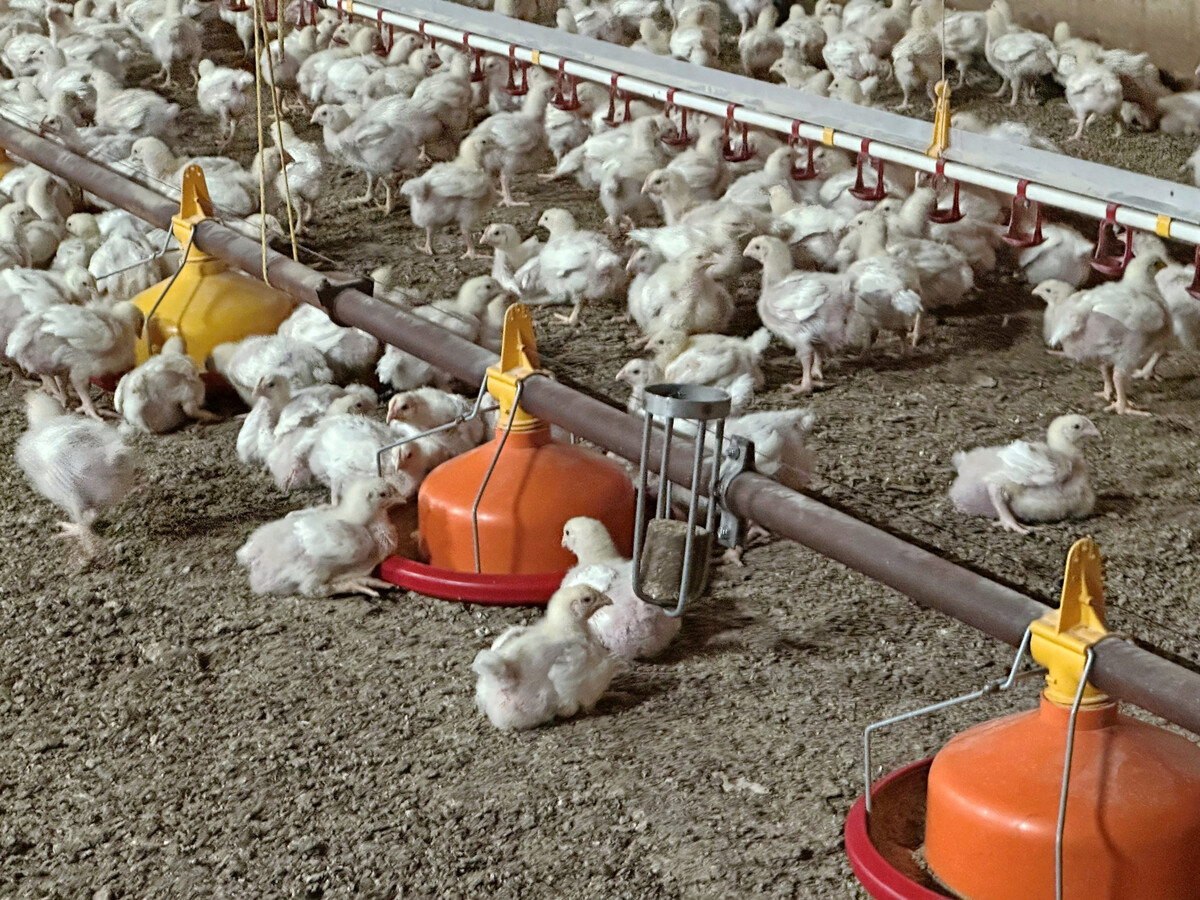 Schweinemast wird heute immer noch an verschiedenen Pachtstandorten mit eigener Getreideproduktion und in Haltungsstufe 2 betrieben, aus Mangel an Fläche konnte dieser Betriebszweig aber nicht weiter ausgebaut werden. Um das betriebliche Risiko zu streuen, investierte der Landwirt in einen weiteren Betriebszweig – die Hähnchenmast. 2007 wurde der erste Stall für 39.900 Masthühner gebaut und zeitnah drei weitere Ställe.