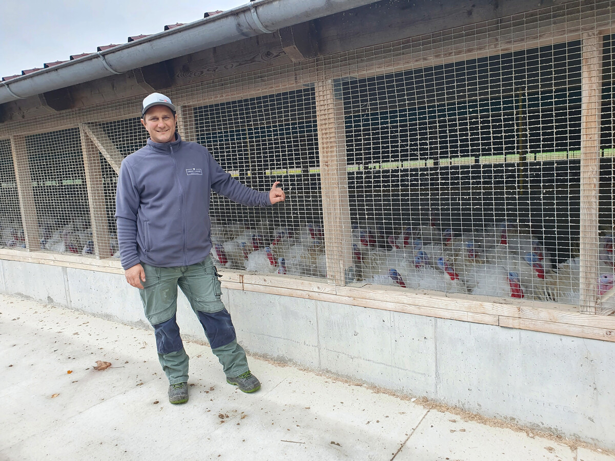 An der bayerisch-württembergischen Grenze führt Ernst Linder den Hof seiner Familie mit drei Putenmast- und zwei Aufzuchtställen. Außenklimabereiche, moderne Technik und transparente Haltung prägen seinen Betrieb und schaffen Akzeptanz.
