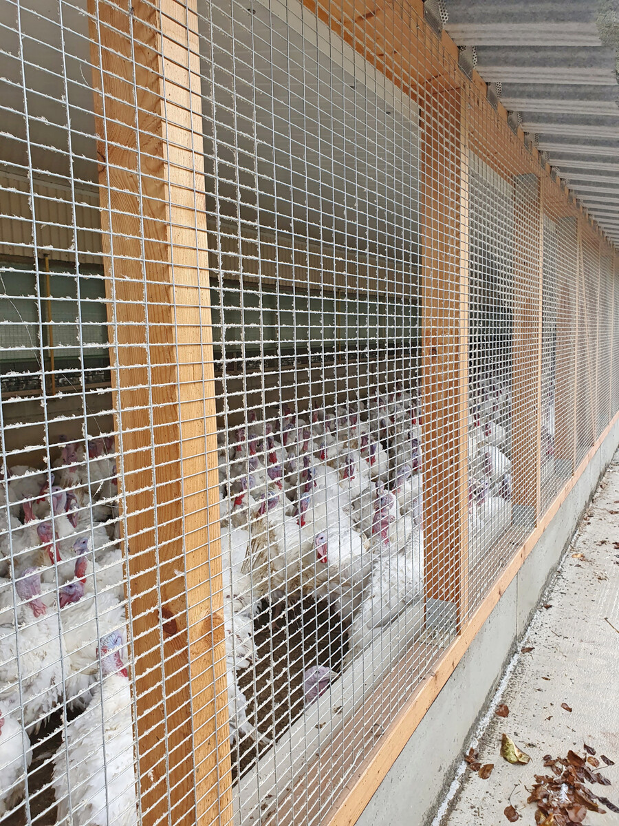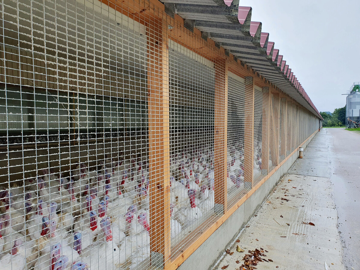 Auch in der Öffentlichkeit kommen die offenen Ställe gut an. Die Gebäude liegen direkt an einem stark frequentierten Radweg. Spaziergänger bleiben häufig stehen, schauen in die Wintergärten und beobachten die neugierigen Putenhähne. Oft ist dann ein aufgeregtes Gluckern im Stall zu hören. Für Linder ist das kein Störfaktor, sondern eine Chance: „Die Leute sehen unmittelbar, wie wir arbeiten. Das schafft Akzeptanz.“