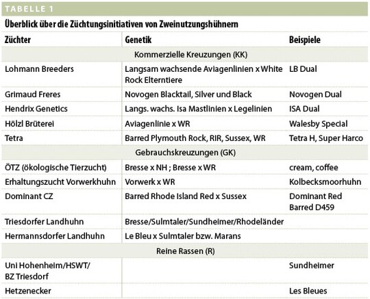- Bereits jetzt gibt es eine Vielzahl geprüfter Kreuzungen, die mehr oder minder als Zweinutzungshuhn geeignet sind und regionale Bedeutung als Marktnische erlangen könnten.